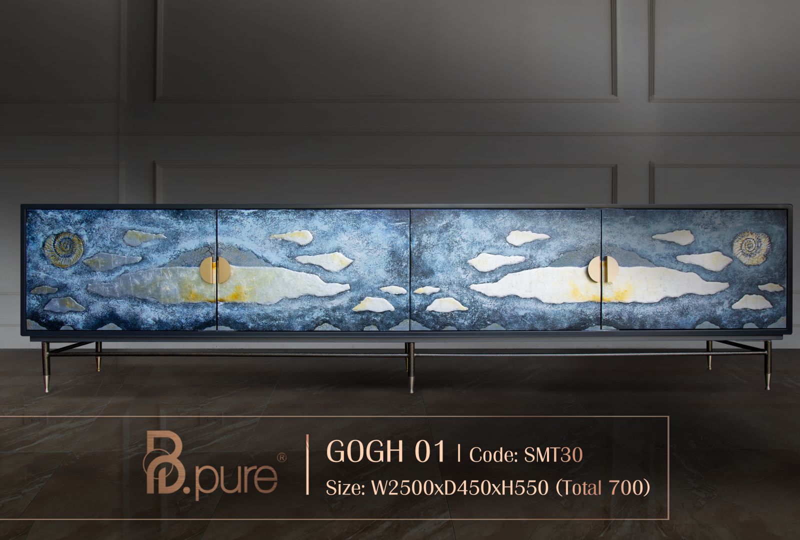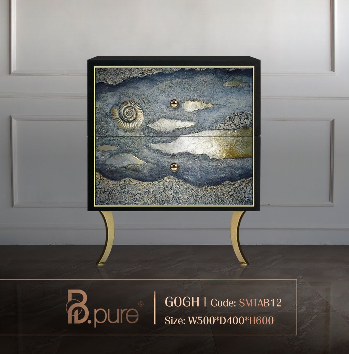 Mô tả : Tác phẩm Gogh lấy cảm hứng từ hình tượng ốc xà cừ – biểu trưng cát tường trong Phật giáo. Ốc xà cừ tượng trưng cho giá trị tinh thần cao quý và tiếng nói giác ngộ. Từ xa xưa, hình tượng này gắn liền với may mắn, hạnh phúc và sự trường tồn. Được xem là tinh hoa của đại dương, ốc xà cừ mang nguồn năng lượng thuần khiết. Nhiều người tin rằng hình tượng này đem lại cảm hứng và vận may. Đồng thời lan tỏa năng lượng tích cực cho cuộc sống người sở hữu.
