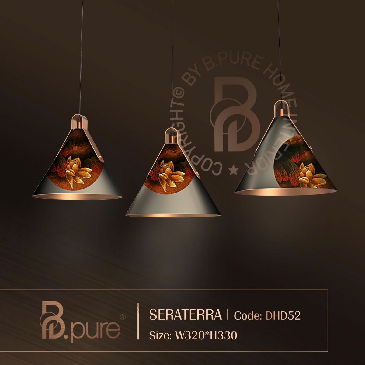 Tựa như hoa sen nở rộ, bộ đèn thả Seraterra mang trong mình vẻ đẹp trầm mặc, sâu lắng của lớp sơn mài thủ công, kết hợp cùng ánh sáng ấm áp lan tỏa, tạo nên một không gian vừa sang trọng, vừa tĩnh tại.