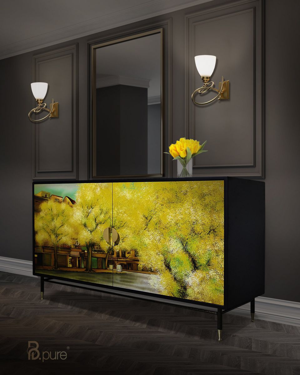 Mỗi chiếc tủ sơn mài là một tác phẩm nghệ thuật thủ công, được chăm chút tỉ mỉ bởi đôi bàn tay tài năng của các nghệ nhân B.Pure Home. Tác phẩm sơn mài trên cánh tủ không chỉ là bề mặt trang trí, mà nó còn kể câu chuyện về sự đam mê và sáng tạo. Sự kết hợp tinh tế giữa sơn mài truyền thống và phong cách đương đại, tạo nên không gian sang trọng và ấm áp cho phòng khách của Bạn - Nơi tập trung ánh nhìn và ngưng đọng cảm xúc của các vị khách khi ghé thăm ngôi nhà cũng như mọi thành viên trong gia đình.