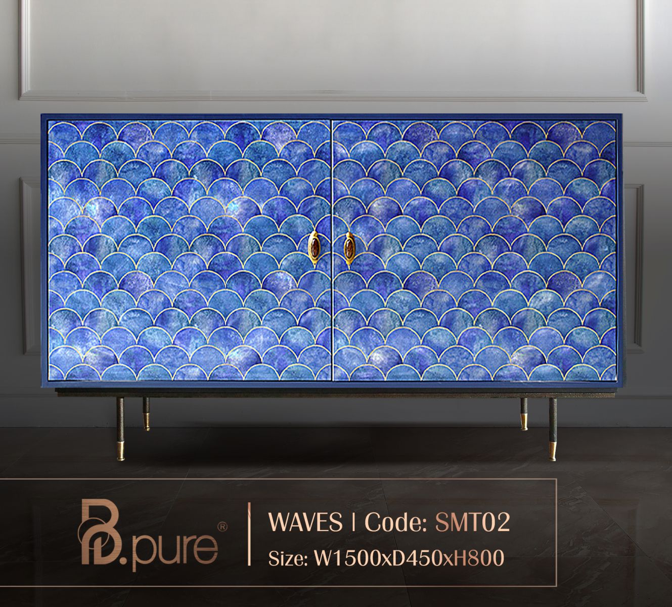 Khởi nguồn từ tình yêu mãnh liệt với biển cả, chúng tôi mang thiên nhiên vào trong sản phẩm. Sản phẩm mang một cảm giác vô cùng gần gũi, trẻ trung, tươi mới. Không sử dụng chất liệu thông thường, tủ trang trí tạo ấn tượng với chất liệu sơn mài là điểm nhấn. Sản phẩm thuộc bộ sưu tập "The story of the ocean" và được thiết kế và sản xuất bởi B.pure Home Interior - thương hiệu nội thất đến từ EU.