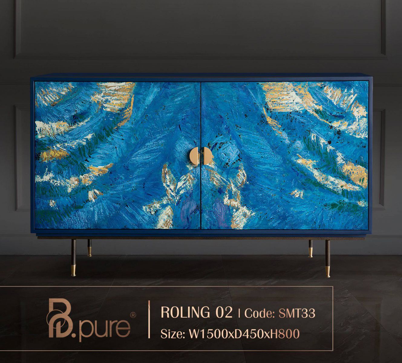 Mô tả : Lấy cảm hứng từ biển cả, B.Pure Home chuyển tải vẻ đẹp thiên nhiên vào các tác phẩm tủ sơn mài mang tinh thần nghệ thuật đương đại. Thuộc bộ sưu tập “The story of the ocean”, mẫu tủ “Rolling” được chế tác từ gỗ chuyên biệt, kết hợp kỹ thuật sơn mài tinh xảo, thể hiện dấu ấn sáng tạo và cá tính riêng của thương hiệu nội thất đến từ EU.