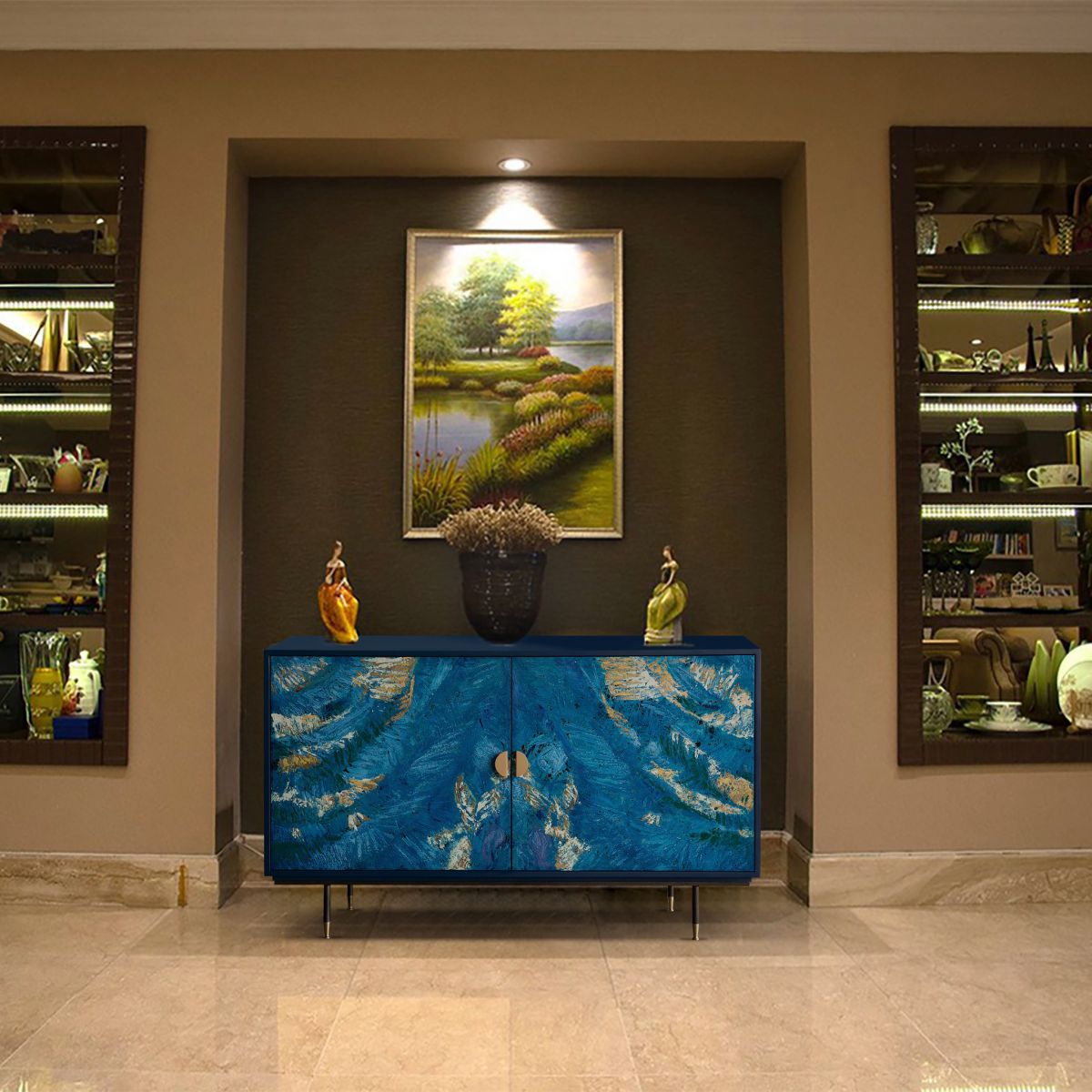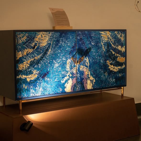 Khởi nguồn từ tình yêu mãnh liệt với biển cả, chúng tôi mang thiên nhiên vào trong sản phẩm. Sản phẩm mang một cảm giác vô cùng gần gũi, trẻ trung, tươi mới. Không sử dụng chất liệu thông thường, tủ trang trí tạo ấn tượng với chất liệu sơn mài là điểm nhấn. Sản phẩm thuộc bộ sưu tập "The story of the ocean" và được thiết kế và sản xuất bởi B.pure Home Interior - thương hiệu nội thất đến từ EU.
