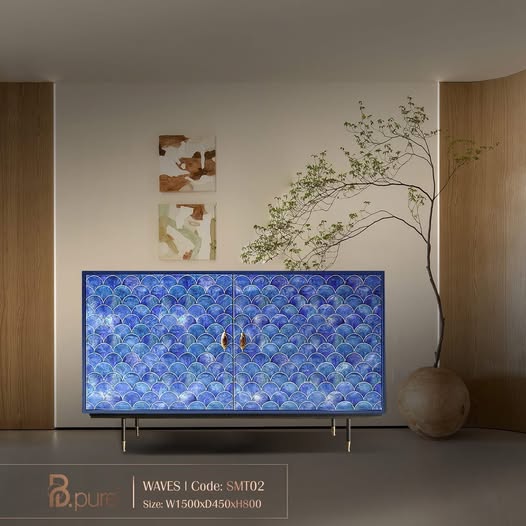 Khởi nguồn từ tình yêu mãnh liệt với biển cả, chúng tôi mang thiên nhiên vào trong sản phẩm. Sản phẩm mang một cảm giác vô cùng gần gũi, trẻ trung, tươi mới. Không sử dụng chất liệu thông thường, tủ trang trí tạo ấn tượng với chất liệu sơn mài là điểm nhấn. Sản phẩm thuộc bộ sưu tập "The story of the ocean" và được thiết kế và sản xuất bởi B.pure Home Interior - thương hiệu nội thất đến từ EU.