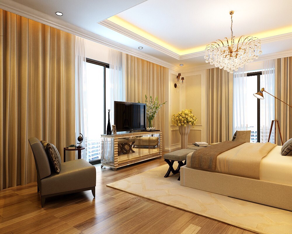 Ý tưởng : Đẳng cấp của một căn hộ cao cấp thể hiện ở đường nét thiết kế độc đáo, không gian thiết kế tinh tế và những vật dụng nội thất chất lượng chuẩn quốc tế. Lựa chọn phong cách thiết kế của châu Âu vừa mang nét hiện đại lại hòa lẫn chút tân cổ điển với tone màu kem là màu chủ đạo, căn biệt thự mang trong mình vẻ tinh tế, trẻ trung nhưng cũng không kém phần sang trọng.